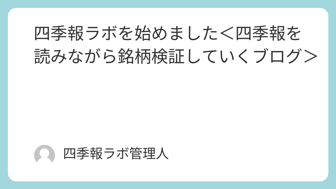四季報ラボを始めました<四季報を読みながら銘柄検証していくブログ>